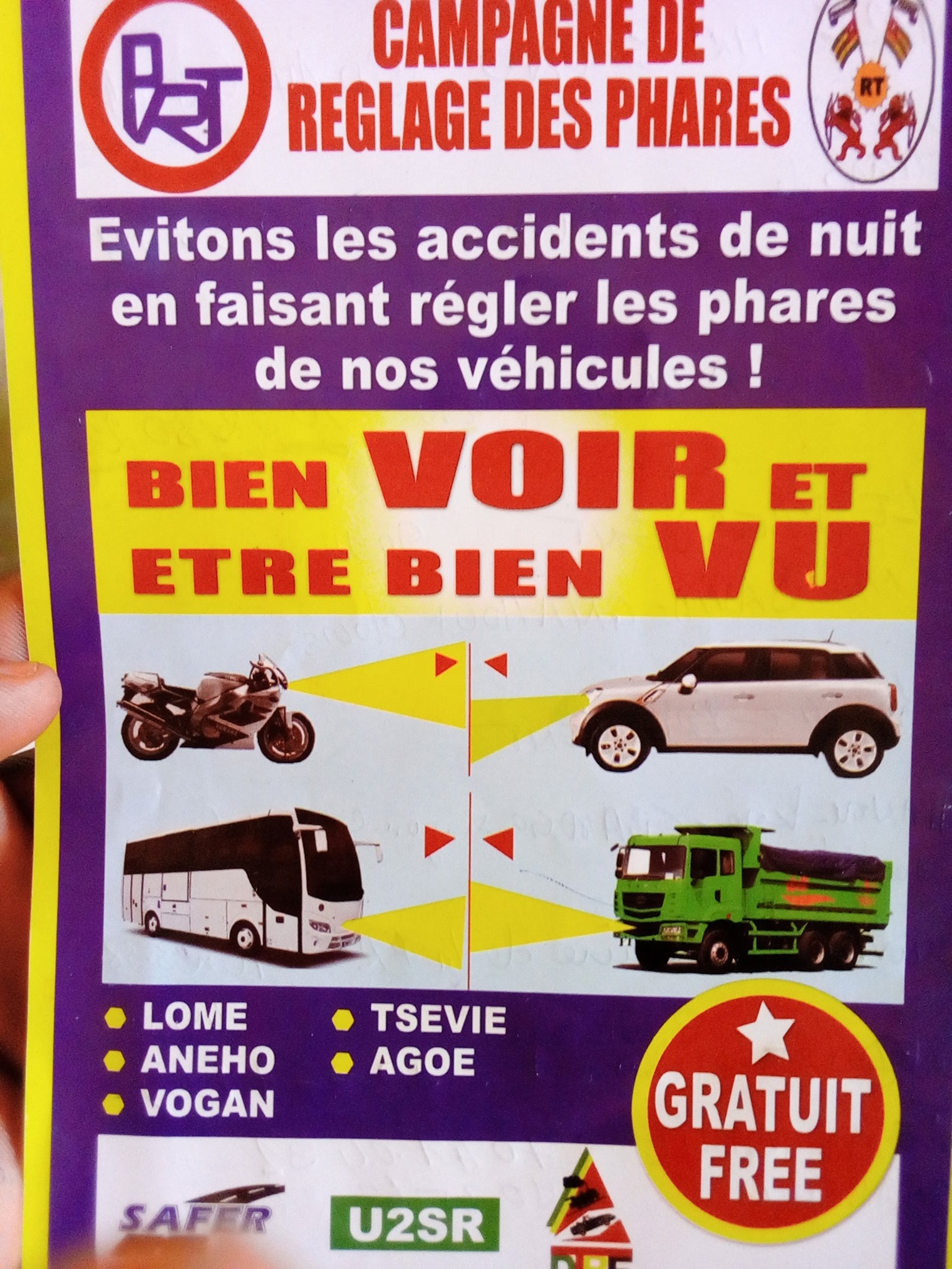 Une caravane regroupant plusieurs participants a traversé la ville de Lomé, distribuant des prospectus et faisant des affiches pour rappeler aux usagers de la route l’importance du respect des passages à niveau.